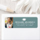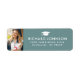 Elegantes White Abschluss Rücksendelabel Foto mit einem Green Grade Cap und dem Namen und der Adresse des Absolventen in modern .