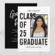 Das Foto Ihres Absolventen, umgeben von großen kühnen Buchstaben der KLASSE OF 25 GRADUATE, mit Ihrem Namen und High School beendet. Auf der Rückseite können Sie Ihr Party personalisieren / Hausdetails öffnen. Fügen Sie Ihr Foto und andere Details hinzu, indem Sie den Link "Personalisieren" anklicken. Die Farben Schwarz und Gold der High School können auch durch das Editing-Menü entsprechend den Schulfarben Ihres Absolventen geändert werden. Wenn Sie Hilfe wünschen, können Sie mich gerne per E-Mail an susanmingaydesigns@gmail.com erreichen oder mich hier auf dieser Seite kontaktieren.