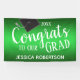 Herzlichen Glückwunsch an die Abschluss-Klasse von 2020. Dieses Banner ist eine personalisierte Namensoption mit grünem glänzenden Farbverlauf. Verwenden Sie einfach die Vorlage, um sich für Ihre eigenen Feiern anzupassen! Der gesamte Text ist einstellbar und der Hintergrund kann bei Bedarf ausgeschaltet werden.