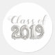 Diese einfachen, runden Aufkleber sind mit einem silbernen Helium-Ballon "Class of 2019" grafisch auf einem weißen Hintergrund versehen. Sie sind ideal, um Umschläge zu versiegeln, wenn Sie Abschlussankündigungen oder Einladungen zur Abschlussfeier senden.