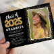 Elegante Graduiertenparty mit einem stilvollen schwarzen Hintergrund, der in jede beliebige Farbe verändert werden kann, einem Foto des Absolventen, einem funkelnd Glitzer in Gold, Goldballons "2024" und einer modernen, leicht personalisierbaren Feierungstext.