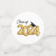 Feiern Sie die Klasse 2024 mit Tischkonfetti, personalisiert für Ihr Klassenzjahr mit bis zu drei Fotos auf der anderen Seite. Der Hintergrund der Grafik 2024 ist weiß mit bedruckten Konfetti Flecks aus Gold.