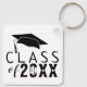 Moderne Klasse der Typografie Graduation Cap Schlüsselanhänger. Trendy schwarze Typografie mit schwarzem Abschluss Hut. Passen Sie die Jahreszahl an. Machen Sie ein großartiges Geschenk und halten Sie Sake für einen Absolventen.