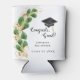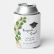 Erstellen Sie eine einzigartige Dose-Cooler für eine Graduiertenparty mit dem Design, das ein Glückwunsch Grad Sprichwort, und ist mit einem Graduiertenkappen und eleganten smaragdgrünen und goldenen eukalyptusgrünen auf einem weißen Hintergrund dekoriert. Die Vorlage macht es einfach, den Namen und das Jahr des Absolventen einzugeben.