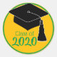 Nutzen Sie diese Klasse von 2024 Green und Gold Grad Cap Sticker als Gastgeschenk oder Umschlag Aufkleber, um den Abschluss Ihres Absolventen zu feiern. Passen Sie dies mit dem Schuljahr Ihres Abschlusses an. Es verfügt über ein niedliches Graduierungspapier mit 'Class of 2024' in einem stilvollen Script-Schriftart.