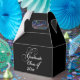 Stilvolle Graduierungsparty Gunst Box mit Leckereien für Ihre Gäste füllen. Schöner Schriftart im Skriptstil "Graduate Class Of". Füllen Sie das Jahr Ihrer geschlossen Klasse aus. Geeignet für alle Arten von Schulen und Universitäten. Die Farbe des schwarzen Hintergrunds kann auf die Farbe Ihrer Wahl geändert werden.