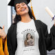 Elegante Typografie-Schriften in Schwarz und Weiß Glückwünsche der Graduate Abschluss T - Shirt mit einem trendigen Bogen Form Foto und modernen Look.