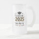 Feiern Sie Abschluss mit Anmut und Funkeln! Diese elegante 16oz-Tasse aus mattiertem Glas besticht durch eine goldene "2025" mit zauberhaften rosa Sternen, Schmetterlingen und Herzen - das ideale Geschenk für ihren Abschluss. Ein Sake, den sie mit jedem Schluck liebt!