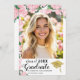 Erstellen Sie mit dem Foto Ihres Absolventen für den Abschluss 2025 eine einzigartige Ankündigung. Dieses Design ist mit einem Graduiertencap und Diplomabbildungen in goldgelben Farben und rosa Rosen im Aquarellstil dekoriert. Die Vorlage macht es einfach, die Ankündigung des Abschlusses mit einem Namen, Jahr, Schulname, Foto und anderem Text zu personalisieren. Text ist in diesem Design schwarz.
