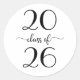 Passen Sie das Jahr für eine schöne kursive Typografie-Design, die lautet: Klasse von [JAHR]. Das schicke, moderne, anpassbare Design bietet schwarze Skriptwörter auf einem weißen Hintergrund. Ideal für Abschluss Geschenkverpackungen und Umschlag Aufkleber.