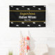 Dieses Schwarz-weiße und goldene Abschluss-Banner hat ein Muster von weißen Graduiertenkappen im Hintergrund. In der Mitte gibt es Display-Text können Sie mit einer benutzerdefinierten Nachricht (angezeigt: Herzlichen Glückwunsch), den Namen des Absolventen und das Jahr, in dem der Student geschlossen wird, personalisieren. Das Imitat Gold Skript ist ein künstlerisches Rendering (es ist nicht Folie).