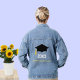 Schwarze Graduierung und Abschluss Jahr Nummer Denim Jacket. Text kann personalisiert sein.