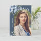 Dieses elegante Abschluss-Angebot besticht durch einen raffinierten blauen Hintergrund, der mit hübsch blauer Rose und Blumendetails harmoniert. Ein individuelles Foto integriert sich nahtlos in das Design und adoptiere automatisch eine Bogenform für einen polierten Look. Das Foto und der gesamte Text können leicht geändert werden, indem Sie auf "Diese Vorlage personalisieren" klicken. Die Rückseite der Einladung passt zum blauen Thema und zeigt die Feierlichkeiten Details in weißem Text. Diese Einladung ist perfekt, um ein unvergessliches Fest und persönlichen Sake zu schaffen.