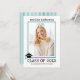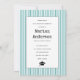 Klasse der 2023 Schreibmaschine aquamarine blaue Streifen Abschluss Foto Einladung. Die Rückseite ist aquamarin und weiß mit Streifen.