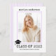 Klasse der 2023 Schreibmaschine lilac lila Streifen Abschluss Foto Einladung. Die Rückseite ist lila und weiß mit Streifen.
