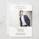 Treten Sie in die Klasse des Jahres auf der Vorderseite dieser klassischen Abschluss-Einladung oder Ankündigung in tiefen Holzkohle graue Farbtöne werden mit Goldtext und Akzenten gepaart, um das Foto Ihres Absolventen auf dieser elegant gestalteten Abschluss-Ankündigung.
