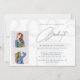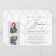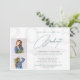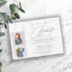 Moderne aquamarin-weiße Absolventen Drehbuch Senior School oder Uni-Abschluss Einladungskarte mit 2 benutzerdefinierten Fotos und elegante zeitgenössische Typografie.