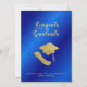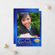 Erstellen Sie eine einzigartige königsblaue und goldene personalisierte Abschluss-Ankündigung mit dem Foto Ihres Absolventen für die Klasse von 2025. Dieses Design ist mit einem Graduiertencap und Diplomabbildungen in goldgelben Farben dekoriert. Die Vorlage macht es einfach, die Ankündigung des Abschlusses mit einem Namen, Jahr, Schulname, Foto und anderem Text zu personalisieren.