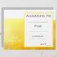 Eine stilvolle Auszeichnung der modernen Klasse mit einem niedlichen Farbspritzer Aquarellgelb-Image, das perfekt geeignet ist, einen jungen Kunststudenten zu ermutigen. Sie können in Ihre eigenen Details schreiben. Eine großartige Ressource für jede Art von Klassenlehrer.
