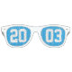 2003 Wiedersehen-Party-Schattierungen für einen phantastischen 20-jährigen Jubiläum-Bash. 20 auf der einen Seite 03 auf der anderen dieser coolen blauen Party-Brille in Weiß geschrieben. Festliche Sonnenbrille zum Partying von Alumni.
