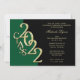 Schöne grün und gold Klasse von 2022 Abschluss Ankündigung oder Einladung. Dieses klassische, elegante Design für das Schuljahr 2022 lässt sich leicht mit einer Vielzahl von Schriftart-Stilen und Fotos oder zusätzlichen Text auf der Kartenrückseite anpassen.