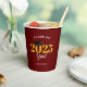 This maroon personalized paper cup is hat einen perfekten Akzent for any graduation celebration. The gold and white text reads: Class of 2023 Grad. Auf Black mortarboard sits on top of the zero in the year.