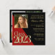 Modern und stilvoll, Class of 2023 Gold, Schwarz und Rot Foto Einladung oder Ankündigung mit bearbeitbaren Farben und schlankes Design und kühn 2023 Akzent. Quadrat Rahmen Foto auf der Rückseite mit Platz für 4 zusätzliche vollfarbige Foto.