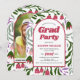 Klasse der 2025 bohemianischen Bogen und bunten Retro Folklore Blume Abschluss gewölbt Einladung. Diese Klasse der 2025 Abschluss-Feier Einladung verfügt über einen Boho-Bogen und farbenfrohe Retro Folklore-Blume, mit anpassbarem Text für eine persönliche Touch. Der einladende Hintergrund hat lebendige Retro Folklore-Blume in den Farbtönen Magenta und Grün und fügt dem Design eine festliche Touch hinzu. Der Text "Grad Party" wird auf der Einladung kühn angezeigt. Die Rückseite der Einladung beinhaltet Platz für ein Foto des Absolventen innerhalb des Boho Boarch, wodurch ein sinnvoller Sake entsteht.