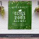 Willkommen Alumni in ihrer High School oder Uni-Klasse Wiedersehen (editierbar für jedes Jahr Wiedersehen) mit diesem benutzerdefinierten Farbband als Zeichen oder Foto op Hintergrund verwendet werden, mit goldenen Sternen, Streichlichter, Kalligraphie-Skript und dekorative Typografie und personalisiert mit Ihrem Schulnamen und geschlossen Klassenjahr. Die Farben (grün, goldweiß und weiß) können in der EDIT-Version auf die Schulfarben oder die Party-Themenfarben abgestimmt werden. TAPESTRY OPTIONS: Das Beispiel wird in der Größe von 50x60" angezeigt. Andere Größen sind auf der Bestellseite verfügbar. HILFE: Für Hilfe bei Designänderungen oder Personalisierungen, Farbänderungen, Größenanpassungen oder der Übertragung des Designs auf ein anderes Produkt wenden Sie sich bitte an den Designer, BEVOR er Bestellung über die Registerkarte Zazzle Chat MESSAGE unten oder per E-Mail an makeitaboutyoustore@gmail.com.