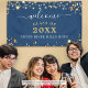 Erstellen Sie ein Wiedersehen Begrüßungsbannerzeichen mit dem Titel WELCOME in einer modernen handgeschriebenen Schrift-Typografie, Jahrgang und Name Ihrer Schule, Uni oder Universität oder anderen benutzerdefinierten Text, der mit goldenen Sternen und Streichleuchten auf einem bearbeitbaren blauen Hintergrund versehen ist, den Sie zu Ihrer Schulfarbe ändern können. ÄNDERUNGEN: Ändern Sie die Hintergrundfarbe oder den Stil, die Größe, die Farbe, den Abstand und die Platzierung des Schriftartes in EDIT. BANNEROPTIONEN: Das Muster wird in 3x5' Größe angezeigt; andere Größen sind auf der Bestellseite verfügbar. Es besteht die Möglichkeit, das Design auf eine Schaumplatte, ein Poster, einen Tapisserie oder ein anderes Produkt zu übertragen oder es vom Designer in eine DIGITALE DOWNLOAD-Datei zum Drucken vor Ort zu konvertieren. HILFE: Für Hilfe bei der Modifikation/Personalisierung des Designs, bei Farbänderungen, bei der Größenänderung, bei der Übertragung des Designs auf ein anderes Produkt oder wenn Sie die Dinge koordinieren möchten, wenden Sie sich bitte an den Designer, BEVOR Sie über Zazzle Chat oder makeitaboutyoustore@gmail.com bestellen.
