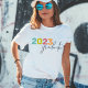 Feiern Sie Ihren Abschluss zu jeder Jahreszeit mit einem modischen T - Shirt, um den besondere Anlass zu markieren. Ihr Unterrichtsjahr wird in fröhlicher, farbenfroher Schrift mit dem Wort "Absolvent" in einem trendigen handgeschriebenen Schriftzeichen geschrieben. Dieses Design ist auch eine gute Wahl für Wiedersehen und Alumni-Anlässe.