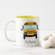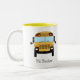 Tasse mit gelbem Schulbus-Design mit Platz auf der Vorder- und Rückseite, um Namen und besondere Botschaften hinzuzufügen. Die perfekte Art, Ihre Wertschätzung für Ihren Klassenlehrer oder Schulbusfahrer zu zeigen