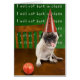ein Mops mit einer Narrenkappe, die einen Apfel auf einem Schulschreibtisch betrachtet