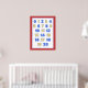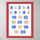 Rot, Blau und Gelb Zahlen Plakat für Klassenzimmer oder Hausschule.