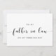 Eine einfache und minimalistische Geschenkkarte, um eine persönliche und herzliche Nachricht für Ihren Schwiegervater an Ihrem Hochzeitstag zu schreiben. Vollständig anpassbar mit Ihren Lieblingsfarben (Text und Hintergrund). Sie können eine Nachricht auf der Rückseite hinzufügen, oder sie leer verlassen, wenn Sie Ihre Nachricht lieber später handschreiben möchten.