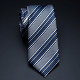 Saubere und zeitlose marineblaue und weiße gestreifte Krawatte mit einer Mischung aus dicken und dünnen Streifen. Sie hat das klassische, scharfe Aussehen, das nie aus der Mode kommt – perfekt für geschäftliche Anlässe, formelle Veranstaltungen oder alltägliche elegante Outfits. Der knackige Kontrast macht es leicht, sie mit fast jedem Hemd zu kombinieren.