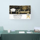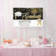 Zeigen Sie Ihren Stolz in Ihrem Lieblingsgrad mit diesem goldenen Text "Graduate" Text schwarz-weiß-Design mit goldfarbenen Sternen und Feuerwerk hinter einem Graduationsdeckel. Der untere Teil zeigt den Namen und die Schule Ihres Absolventen zusammen mit dem Abschluss Jahr auf dem silbernen Ton und goldenen Tonband. Design by Holiday Hearts Designs (Rechte vorbehalten).