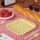 Klassisch hell Gelb-Orange und Weiß Streifen Pappteller