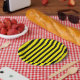 Klassisch hell Gelb und schwarz Streifen Pappteller