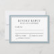 Dieses Design ist eine geschmackvolle Hochzeitskarte mit klassischer Einfachheit und bietet einen staubblauen Rahmen, der Ihren Text umrahmt, um die Aufmerksamkeit auf die Details zeichnen, die auf der Antwortkarte angezeigt werden. Sie können die Textplatzierung an Ihren Anzug anpassen, entfernen oder anpassen. Das immer beliebte, staubblaue und weiße Farbschema funktioniert für Hochzeiten zu jeder Jahreszeit und zu jeder Tages- oder Abend-Zeit. Personalisieren Sie die Textvorlage mit dem gewünschten Antwortdatum.