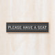 Dieses Vintage, altmodische Design enthält die Meldung "BITTE HABEN SIE EINEN SITZ". Dies könnte in einer gewartet Lounge genutzt werden, um Kunden, Patienten oder Besucher darüber zu informieren, dass sie in Kürze unterstützt werden und bis dahin einen Platz einnehmen sollten.