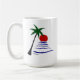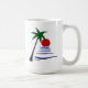 Klassische 15 0z Kaffee Tasse mit farbenfroher minimalistischer Palm Sunset Design.