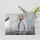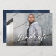 Diese einfache und klassische Ankündigung des Abschlusses zeigt ein großes horizontales Foto und das Wort "Absolvent" in der weißen Schrift. Außerdem gibt es viel Platz für Name, Jahr und Schulinformationen. Der koordinierende karierte Backer kann mit Ihrer Wahl einer Schule oder Lieblingsfarbe angepasst werden (klicken Sie auf den Button "Anpassen", wählen Sie "Zurück" und dann "Wählen Sie eine Hintergrundfarbe"). Funktioniert gut für Typ und Mädchen und verfügt auch über einen passenden Adressenaufkleber.
