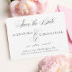 Speichern Sie die Termine für eine klassische Hochzeitseinladung in Schwarz/Weiß oder in einer ausgewählten Farbe. Bearbeiten Sie Textfarbe und Platzierung mit dem Werkzeug Bearbeiten.