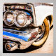 Klassisches amerikanisches Auto aus dem Jahr 1950. Teilansicht der Scheinwerfer, Vorderrad und Stoßstange