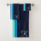 Klassische Blaue Cursive Mit Monogramm Line Art Badhandtuch Set