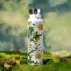Klassische Blütenmuster Weiße Blumenfelder Grün Trinkflasche