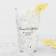 Klassische Braut und Bräutigam mit Hochzeitsort und Dattelglas.