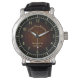 Diese Uhr hat ein klassisches, dunkelbraunes Gesicht. Es heißt "Klassische Zeit Behalte"