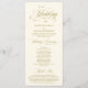 Elegantes Retro-Gold-Skript, Hochzeitszeremonie-Programm in 4x9 Zoll (lang) Karte. Es ist mit Scrollakzent entworfen, der personalisiert werden kann mit benutzerdefiniertem/personalisiertem Text für Ihr Brautparty, Zeremonie Details, Gedenkhinweise und Dankeschön-Nachricht. Wenn Sie weitere Programmkarten-Typen und -Größen suchen, durchsuchen Sie bitte unseren passenden Programmkartenabfrageabschnitt.
